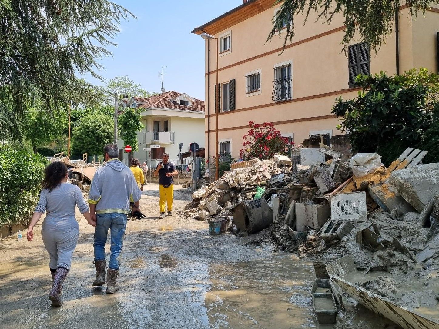 Un grande secchio d’acqua all’ingresso della chiesa. A cosa serve? A pulirsi (parola grossa…) i piedi dai ‘zaccharoni’ di fango che abbiamo ai piedi tutti, oggi, davanti alla chiesa della parrocchia di San Rocco. Lì, tra il Savio e il Ponte Vecchio, crocevia di strade, di villette familiari, di destino e di fatica. E brulicare di solidarietà.