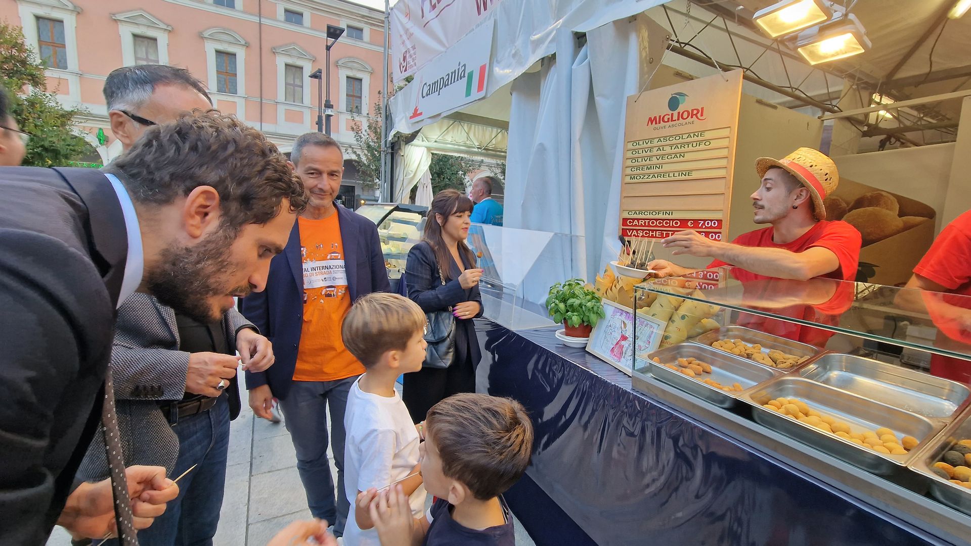 Fra le autorità presenti oggi all’inaugurazione, il sindaco Enzo Lattuca con l’assessore comunale Luca Ferrini, l’assessore regionale al Commercio e turismo Andrea Corsini e la parlamentare Alice Buonguerrieri. Con loro gli organizzatori: il presidente Cesare Soldati e il direttore Graziano Gozi di Confesercenti Ravenna-Cesena e i rappresentanti di Slow Food Cesena ed Eventi in Itinere, Bcc Romagnolo, Centrale del Latte di Cesena, Matilde Studio, Aidoru Associazione, Sidea Spezie, Plenitude, Mito Sistema ambiente. Presenti anche i membri della giuria che domani conferiranno il terzo “Premio Gianpiero Giordani”, in memoria dell’ideatore del Festival. A tenere il nastro i due figli del sindaco Lattuca, che si sono fiondati con curiosità fra le prelibatezze dei vari stand.