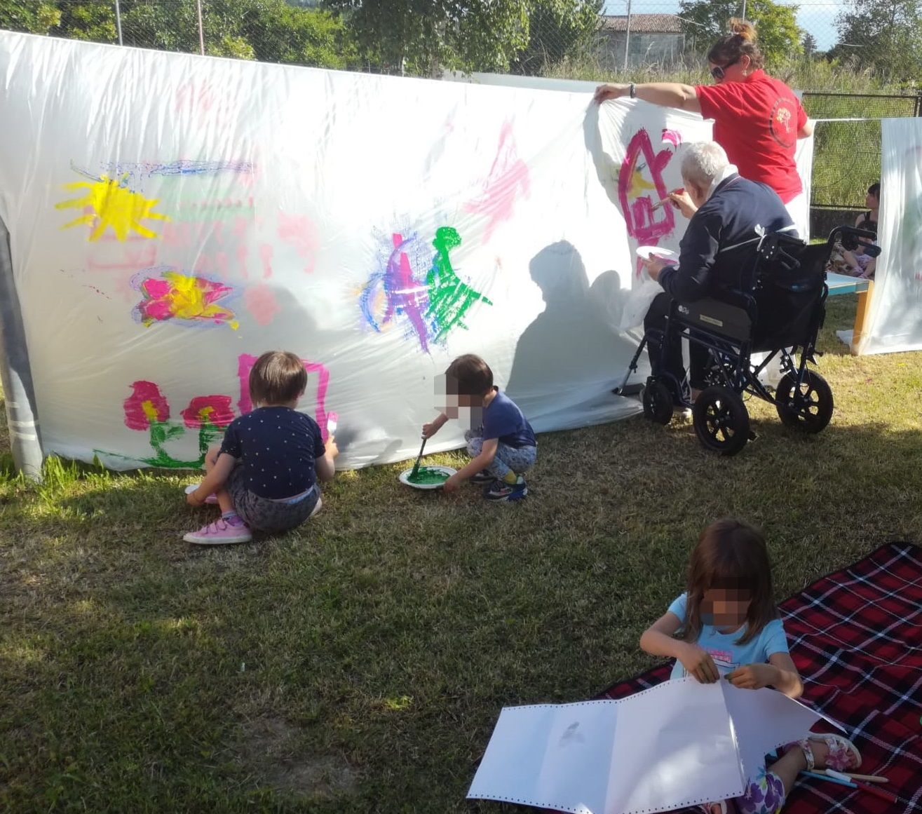 La giornata del 3 giugno è stata caratterizzata dalla volontà di riunire nello stesso giardino tre generazioni. Ospiti speciali sono stati infatti gli anziani del Nuovo Roverella i quali hanno condiviso con i più piccoli il momento della lettura, quella merenda e quello creativo della pittura verticale, rendendo la giornata un po’ più speciale.