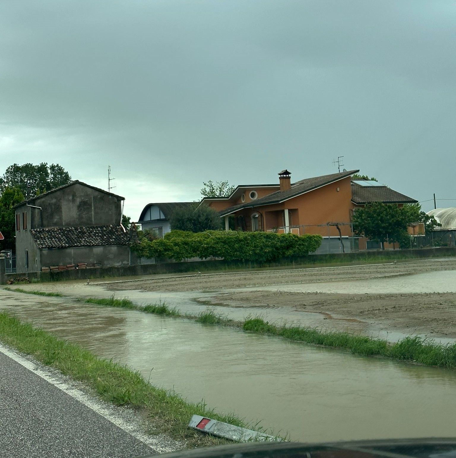 Proseguendo sulla Provinciale, gli allagamenti interessano tutti i campi vicini al torrente Olca, anch’esso esondato nella prima mattinata.