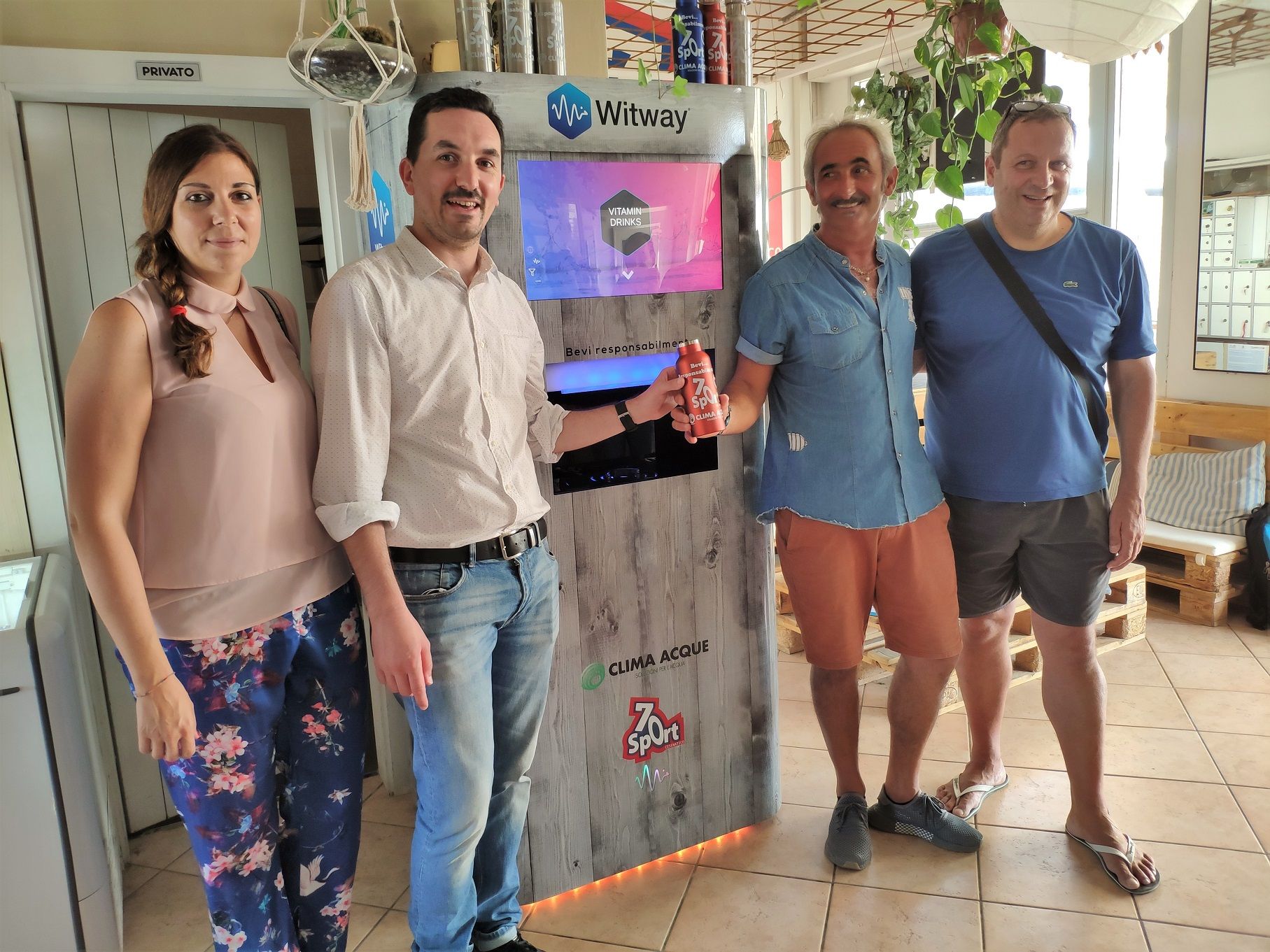 Partner del “Bagno Sport 70” è l’azienda “Clima acque” di Rimini. La macchina erogatrice è offerta dall’azienda “Witway” di Verona. “Si tratta di una sperimentazione di un anno – fa sapere Flavio Prati, legale rappresentante di “Clima acque -. A fine stagione tireremo le somme”. Flavio Fiorazzo e Dino Bellini di Witway fanno sapere che “la macchina è già in funzione in scuole e palestre. Il “Bagno Sport 70” è il primo stabilimento a fare questa sperimentazione in riviera”.