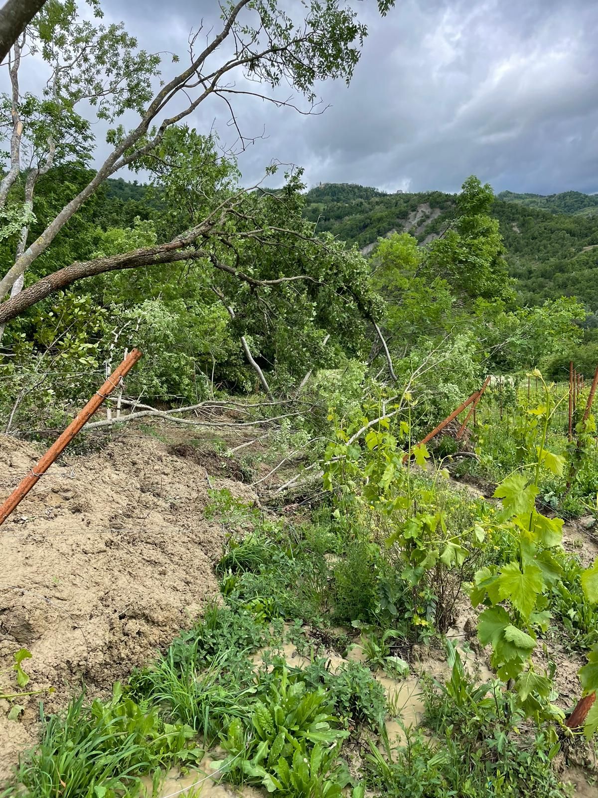 Nelle foto sotto: i danni subiti in vigna alla Tenuta Casali.