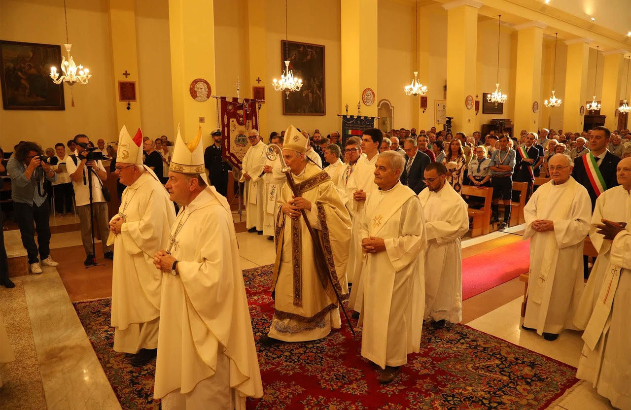 La Messa è stata presieduta dal cardinale Zuppi e concelebrata dai vescovi della regione, monsignor Lorenzo Ghizzoni, monsignor Giancarlo Perego, monsignor Livio Corazza e monsignor Andrea Turazzi, in una chiesa stracolma di fedeli e di scout. Numerose le autorità civili e militari presenti.