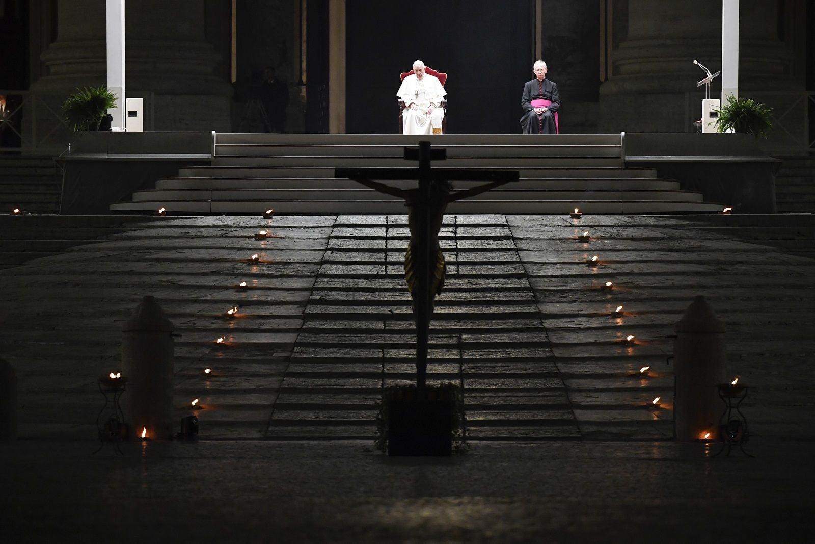 La via Crucis in San Pietro al tempo del Coronavirus, col Papa, davanti a una piazza vuota