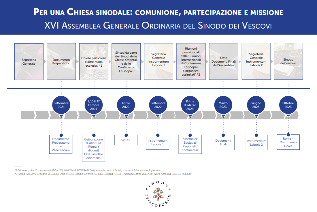 Si riportano di seguito, in forma di schema, le tappe del cammino sinodale.