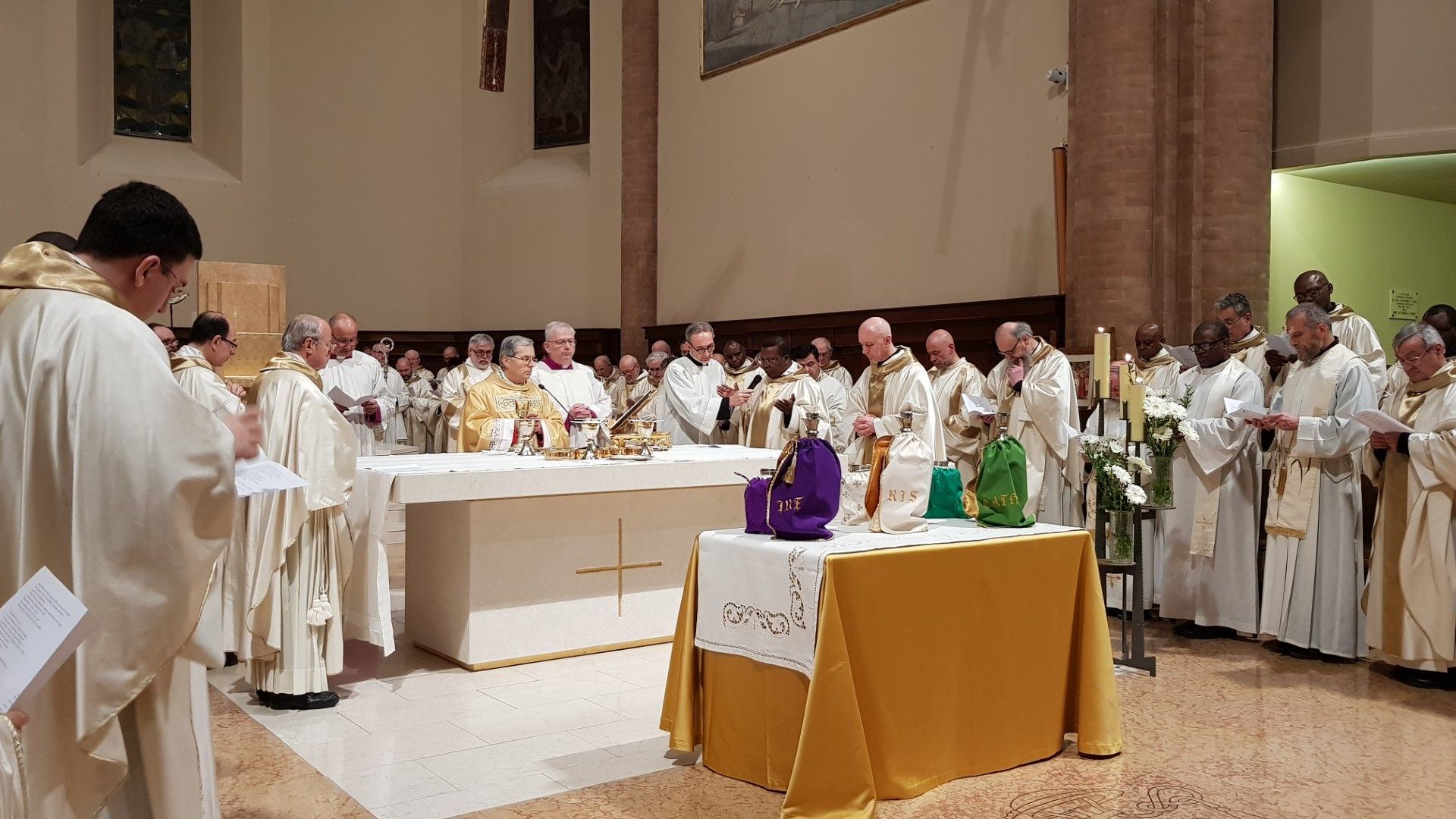 Il vescovo Douglas Regattieri ha presieduto la solenne concelebrazione eucaristica. All’altare con lui il vescovo di Lodi Maurizio Malvestiti, il vescovo emerito di Makeni (Sierra Leone) Giorgio Biguzzi, e gli abati di diverse comunità benedettine. Fra i presenti il sindaco Enzo Lattuca con fascia tricolore, diversi assessori e il tenente colonnello Sabato Simonetti, comandante della Compagnia dei Carabinieri di Cesena.