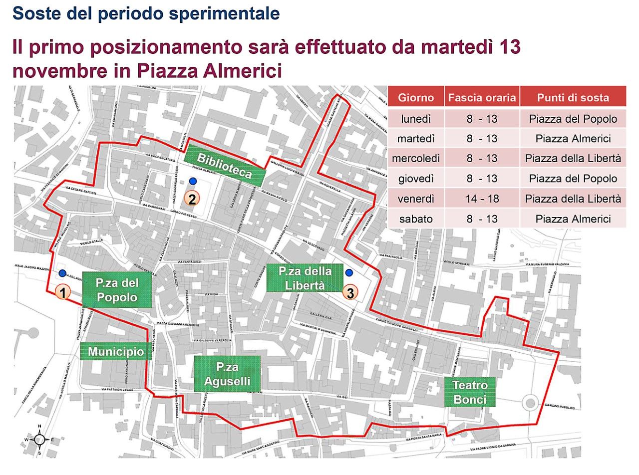 Si tratta di “Ecoself”, un’isola ecologica mobile che circa 3600 utenti utilizzeranno self service grazie a una tessera, la cosiddetta Carta smeraldo, che consentirà a ciascuno di attivare l’apertura del contenitore dove gettare il sacchetto dei rifiuti e al sistema ottico di tracciare il contenuto seguendolo nel percorso dal cittadino all’impianto di recupero. “Ecoself”, che sarà presente da piazza del Popolo ai giardini pubblici della città, è inoltre itinerante ed ecosostenibile. Se da una parte infatti sarà presente nelle aree addette solo alcune ore, dall’altro si autoalimenterà grazie alla presenza di pannelli fotovoltaici installati sul tetto. Come ha spiegato l’assessore Lucchi nove saranno le postazioni all’interno del centro storico (Biblioteca, piazza del Popolo, Municipio, piazza della Libertà, teatro Bonci, piazza Aguselli, via Cesare Montanari, via Roverella 1, piazza Almerici) e saranno destinate a un’utenza domestica e relativa alla rete degli uffici presente nelle zone coinvolte dal progetto pilota. Il super cassonetto si compone di due facciate: su un lato si potranno gettare carta, vetro, plastica e organico, sull’altro invece rifiuti speciali come olii, lampade e piccoli Raee.