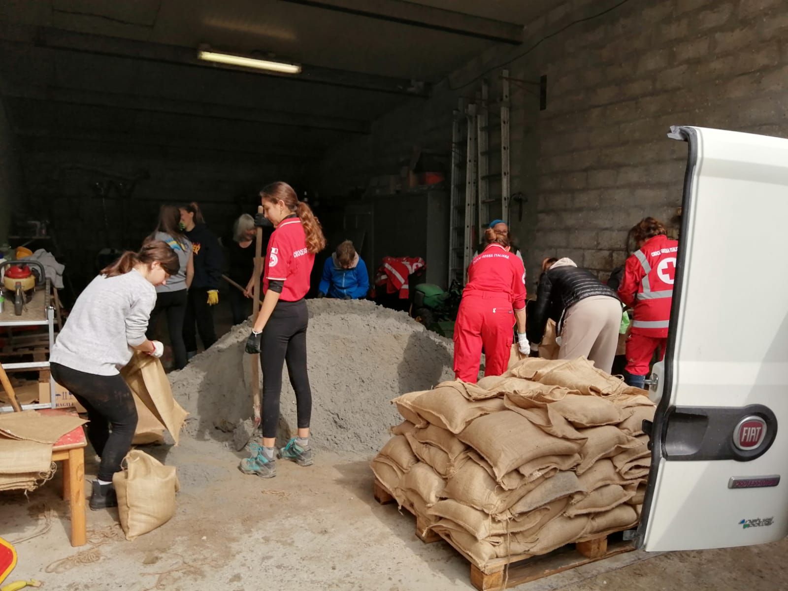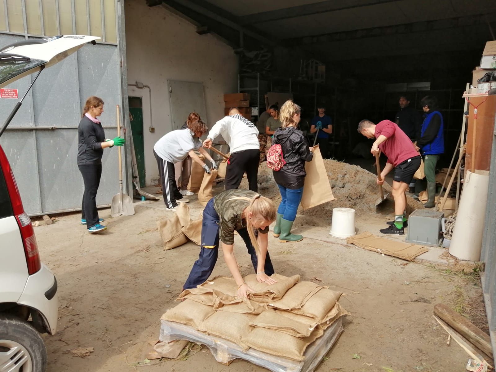 Presso la sede di Cesenatico Servizi, in via Magellano 8, sono in corso le operazioni per preparare sacchi di sabbia fino alle 21 circa.