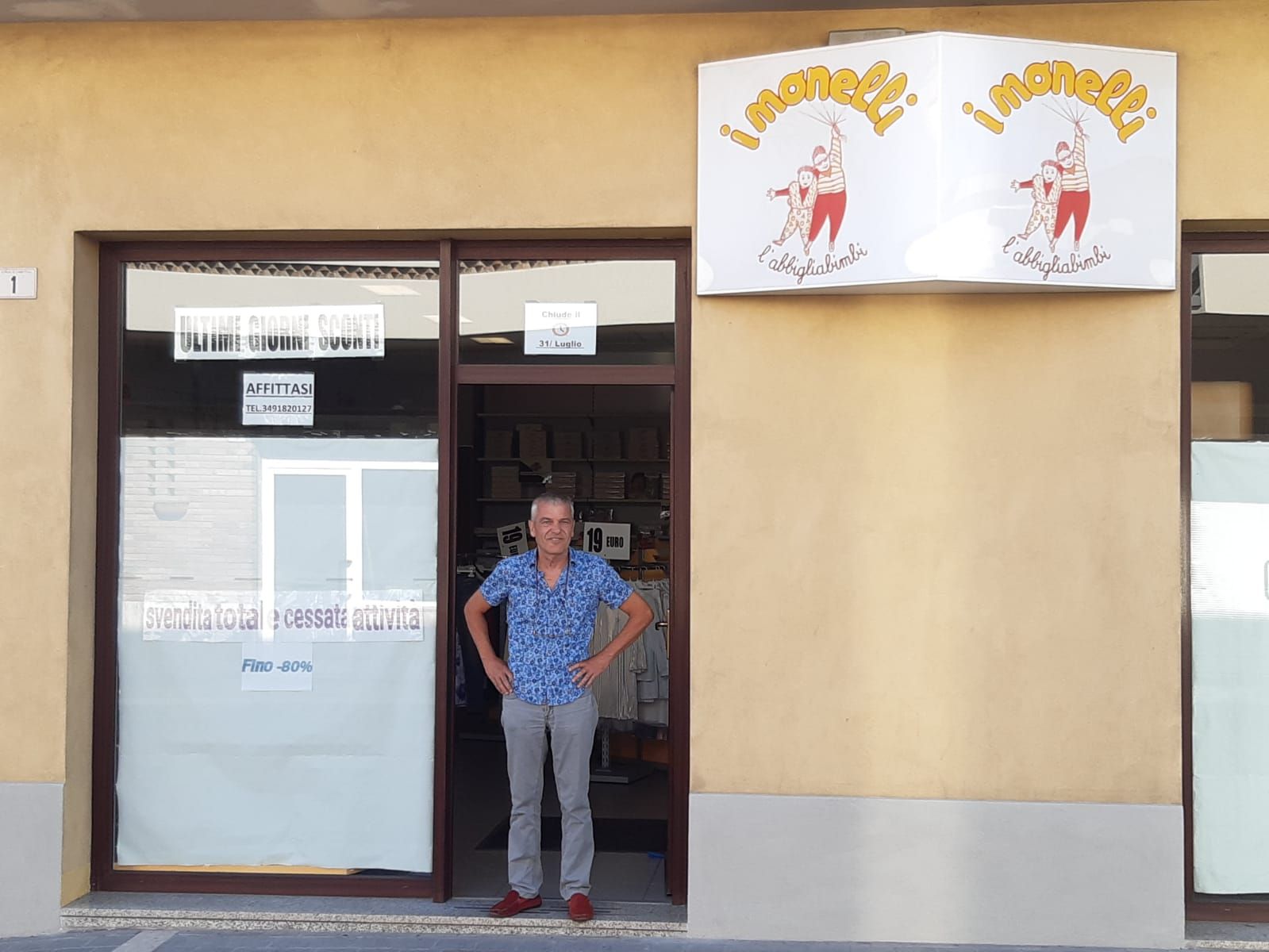 Diverso, in parte, il motivo che ha portato alla cessazione dell’attività de I Monelli, che ha posto le sue radici grazie al padre Primo Budelacci, che iniziò a commerciare in calze e merceria nel lontano 1932, grazie a una bicicletta e due valige, aiutato dalla moglie Isolina Bellavista. Con l’aiuto dei fratelli Fantini, che trasformarono una vecchia auto Fiat in autocarro, nel 1937, Primo iniziò a portare nei mercati ambulanti le merci, soprattutto calze, merceria, federe e stoffe. Nel 1940 nel garage dove teneva il camion (dove ora si trova la gelateria Copacabana), apri il suo primo negozio Magazzini Budelacci Primo. Nel 1952 costruì l’attuale negozio e vi si spostò aggiungendo materassi, pellicce e abbigliamento per adulti. Nel 1983 il figlio Amedeo ha raccolto il testimone del padre diventando il titolare del negozio e trasformandolo nell’attuale I Monelli, specializzato in articoli e vestiti per bambini da 0 a 14 anni. Dopo un periodo di vendita florido, il motivo della cessata attività è da attribuire alla stanchezza derivata dalla sfortuna attraversata negli ultimi anni. Gli ingenti danni causati dall’alluvione del 2016, le perdite d’incasso per i lunghi lavori nella strada prospicente e la recente chiusura di oltre tre mesi causata dalla pandemia, hanno smorzato l’entusiasmo per continuare questo lavoro. Decisione sofferta specie per chi ha vissuto l’attività dentro al negozio sin dall’età dell’infanzia.