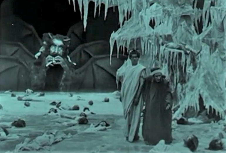 Un grande momento di confronto su tutto quello che la cinematografia ha realizzato intorno alla figura di Dante e alla Divina Commedia. Nel documentario viene analizzata la ricca filmografia ispirata a Dante e alla Divina Commedia, dagli anni del muto fino ai giorni nostri. Particolare attenzione viene riservata a due film del 1911, dedicati alla prima Cantica del poema dantesco: L’Inferno della Milano Films e L’Inferno della Helios Film, due opere completamente diverse ma capaci tutte e due di rimanere scolpite nella storia del cinema. La prima per la magnificenza della messa in scena, i primitivi movimenti di macchina e la durata per l’epoca eccezionale, la seconda per la secchezza del racconto e l’arditezza delle immagini, ricche di nudi maschili e femminili. Ma l’opera del Sommo Poeta – ricorda il lavoro di Melelli e Patucca – è al centro anche di diversi film di produzione estera, come i due film hollywoodiani dal titolo Dante’s Inferno, rispettivamente del 1924 e del 1935 o il recentissimo La casa di Jack del danese Lars Von Trier. L’immaginario dantesco è presente in film che rielaborano la materia letteraria di partenza in chiave immaginifica e fantasmagorica, come Maciste all’inferno, un film di Guido Brignone del 1926 – noto soprattutto per essere stato il primo film visto al cinema dal piccolo Federico Fellini – rifatto con lo stesso titolo, e qualche sostanziale modifica, nel 1962 da Riccardo Freda. Ma il documentario affronta anche aspetti legati alle sperimentazioni e alle avanguardie artistiche, analizzando il film d’arte The Dante Quartet di Stan Brackage, astratta sintesi di appena 6 minuti dell’intero poema dantesco, e la serie televisiva A Tv Dante, coraggiosa contaminazione di linguaggi e modalità comunicative diverse, affidata a due cineasti irregolari come Peter Greenaway – con la collaborazione di Tom Phillips – e Raoul Ruiz. Non può mancare naturalmente Totò, protagonista di Totò all’inferno, e Totò al giro d’Italia, in cui compare addirittura Dante Alighieri, interpretato da Carlo Ninchi, che aspetta nel regno delle anime l’arrivo di Totò che scende a patti con un diavolo di seconda classe per vincere la corsa del titolo e conquistare così il cuore della bella Isa Barzizza.