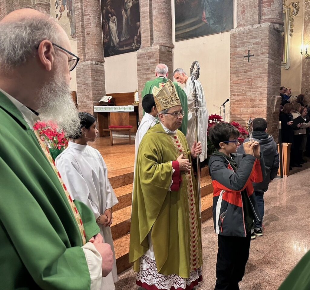La celebrazione di “saluto” al vescovo Douglas Regattieri ha coinciso con l’esposizione in maniera permanente di una reliquia del futuro santo