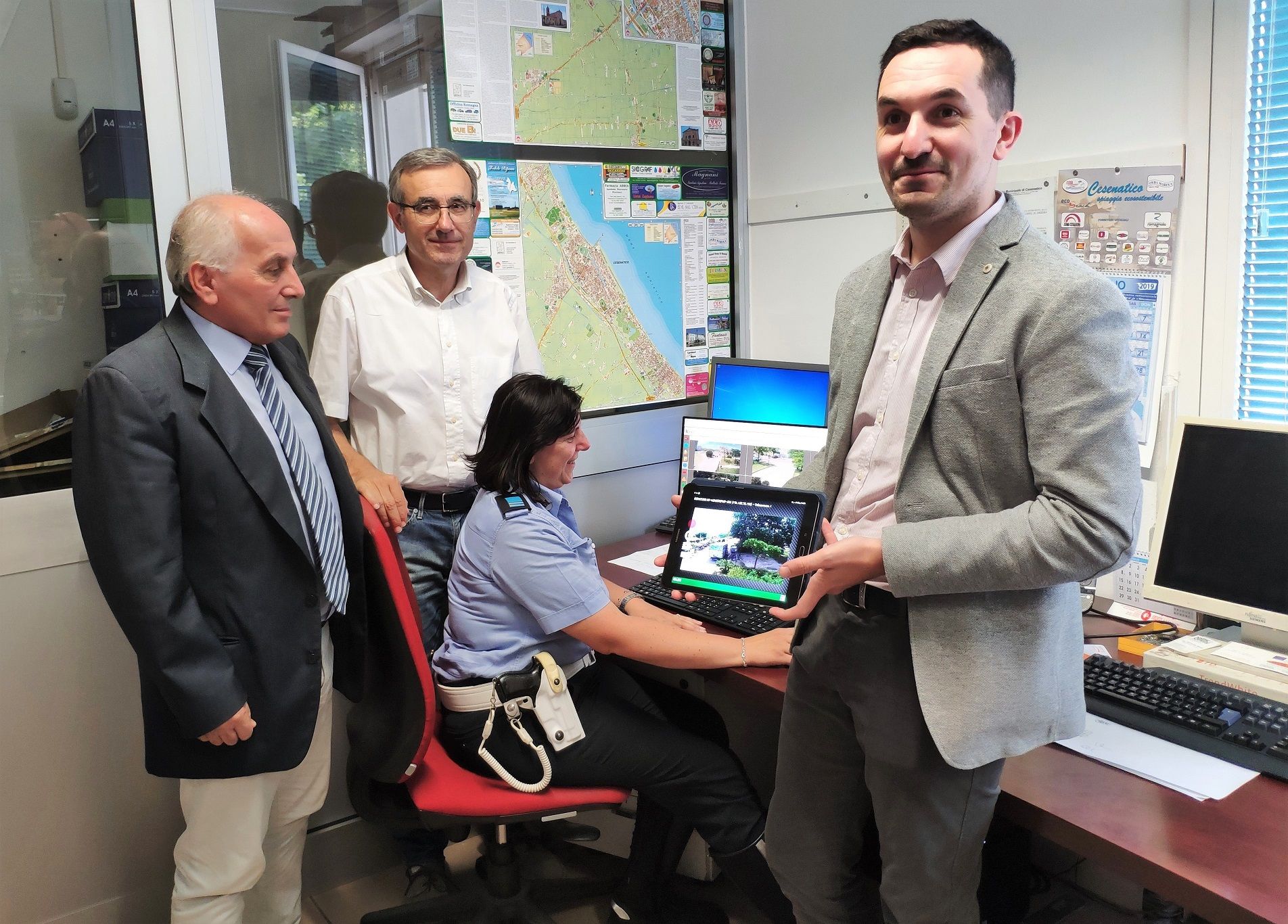 “Dopo un anno e mezzo di lavoro, sono state accese le prime 85 telecamere del nuovo sistema di videosorveglianza”. Ad annunciarlo oggi, in conferenza stampa, il sindaco di Cesenatico Matteo Gozzoli. Con lui il vicesindaco Mauro Gasperini, il segretario generale del Comune Iris Gavagni Trombetta, il comandante della Polizia locale Edoardo Turci e Luca Pirillo, consulente tecnico della Tim.