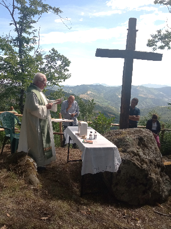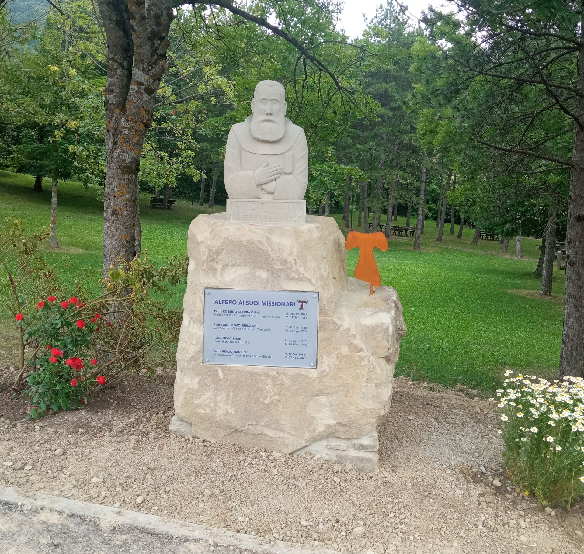 L’inaugurazione del monumento in sasso dedicato ai missionari – con busto di padre Guerra e Tau francescano – si è svolta domenica 18 agosto (nelle foto, la Messa celebrata da don Edero Onofri e il monumento ai missionari).
