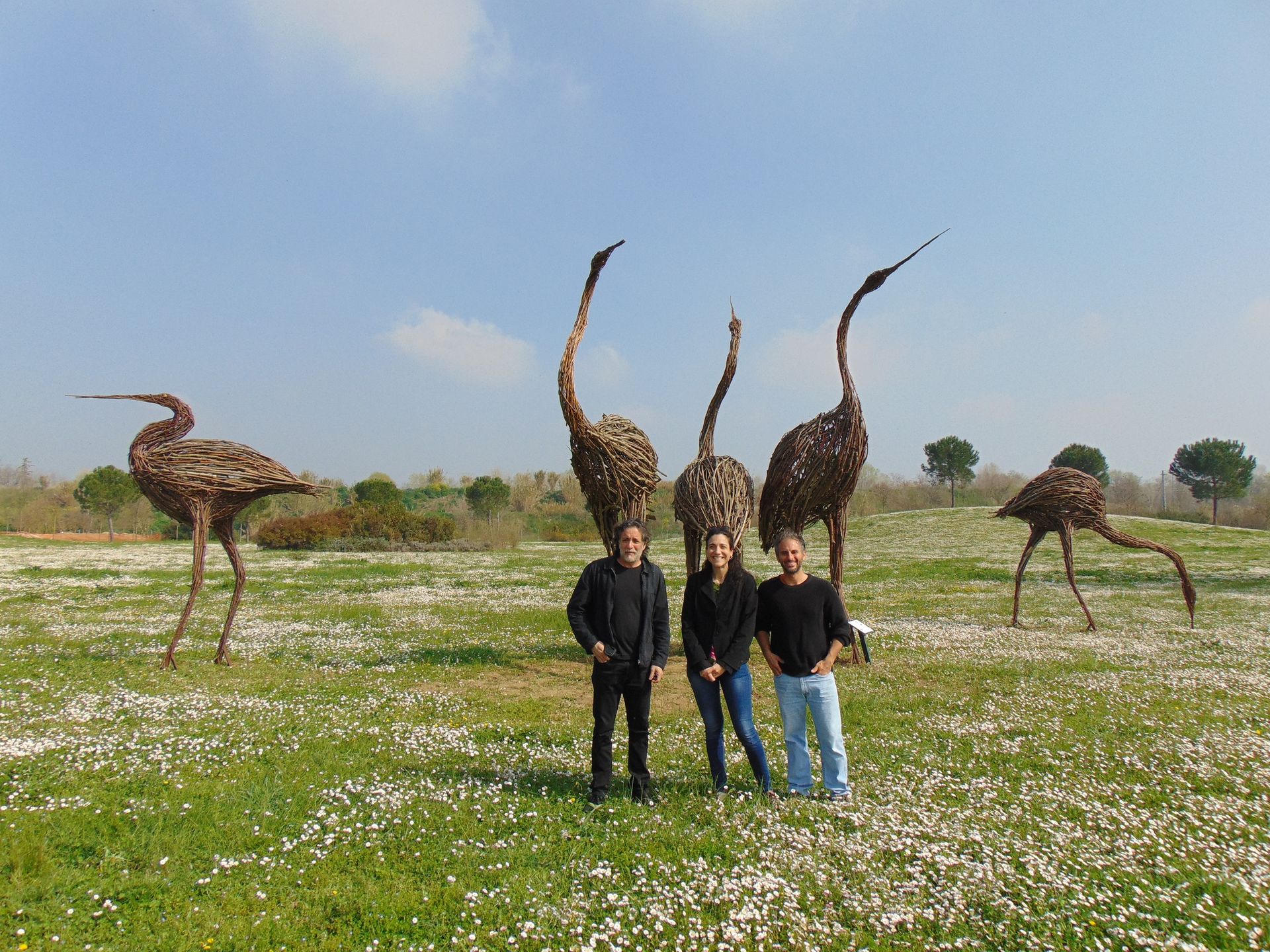 Cinque aironi di diverse dimensioni sono comparsi questa mattina al parco Ippodromo di Cesena, il più grande della città. Si tratta di un’opera di Land Art realizzata dagli artisti Matteo Lucca di Forlì e Oscar Dominguez, originario dell’Argentina, con materiali naturali sostenuti da una struttura in ferro. Intitolato “Riva”, con esplicito riferimento alla vicinanza del fiume Savio, il progetto si inserisce nell’ambito del percorso di Migra Land Art, progetto di installazioni in natura che vive della stessa natura effimera e transitoria di chi migra. Il progetto è destinato a mutare nel tempo con l’alternarsi delle stagioni e delle caratteristiche del luogo. Lo rende noto il Comune.