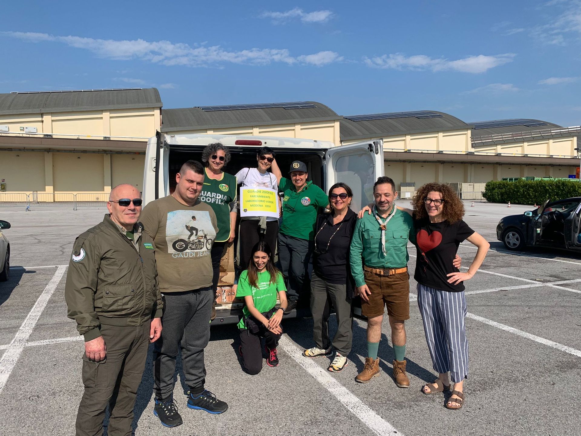 Il materiale è stato raccolto attraverso il Laboratorio Verde Modena, su iniziativa della presidente del consiglio comunale Nicoletta Dall’Ara che mantiene il contatto da tempo. Il laboratorio si occupa della salvaguardia degli animali. Alcuni volontari di Settecani, paese del modenese, hanno curato la raccolta di cibo e coperte, confezionando in tutto sei pallets che sono stati consegnati da loro personalmente alla Fiera a Cesena, dove è collocato il punto di raccolta dei materiali donati per l’emergenza alluvione.