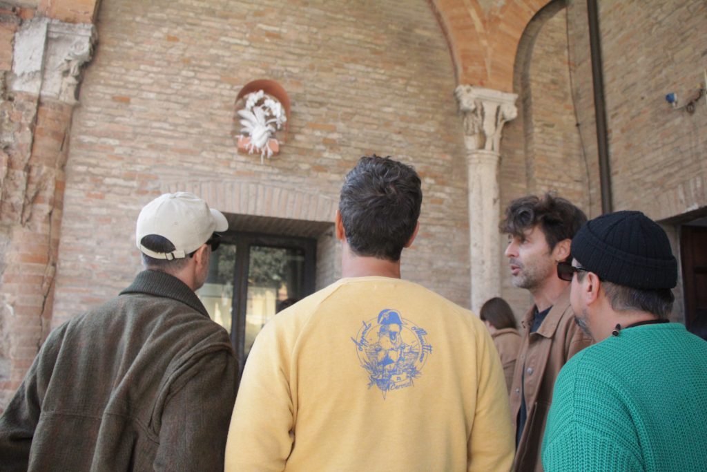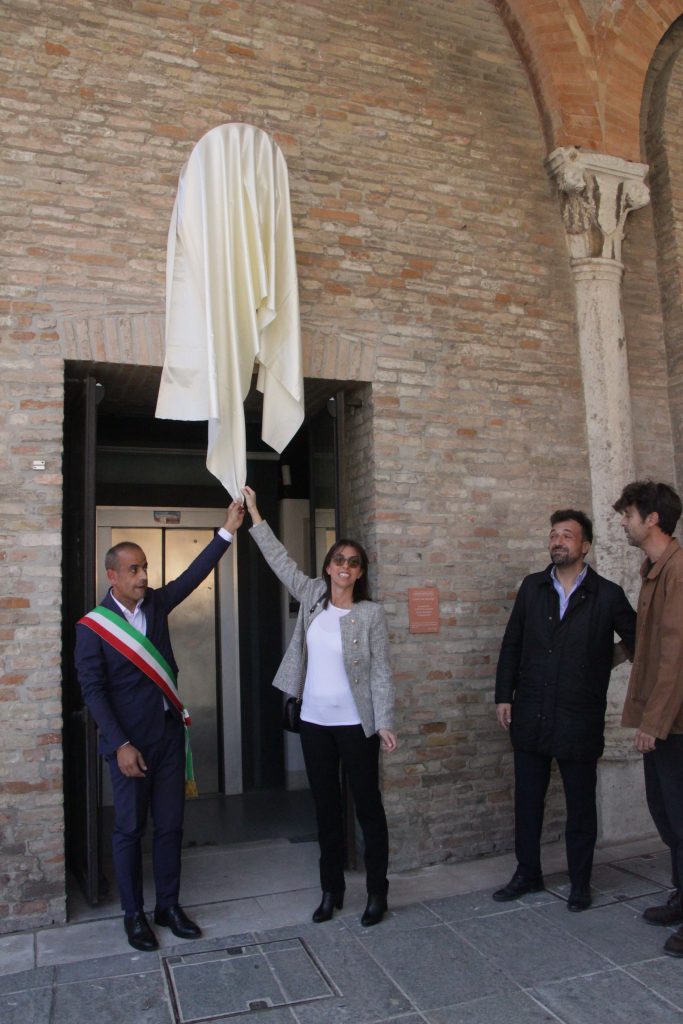 Dopo l’autorizzazione della Soprintendenza, lo Studio di Marcantonio ha proceduto con l’installazione dell’opera sulla parete esterna del Palazzo del Ridotto, proprio accanto uno dei due defibrillatori.