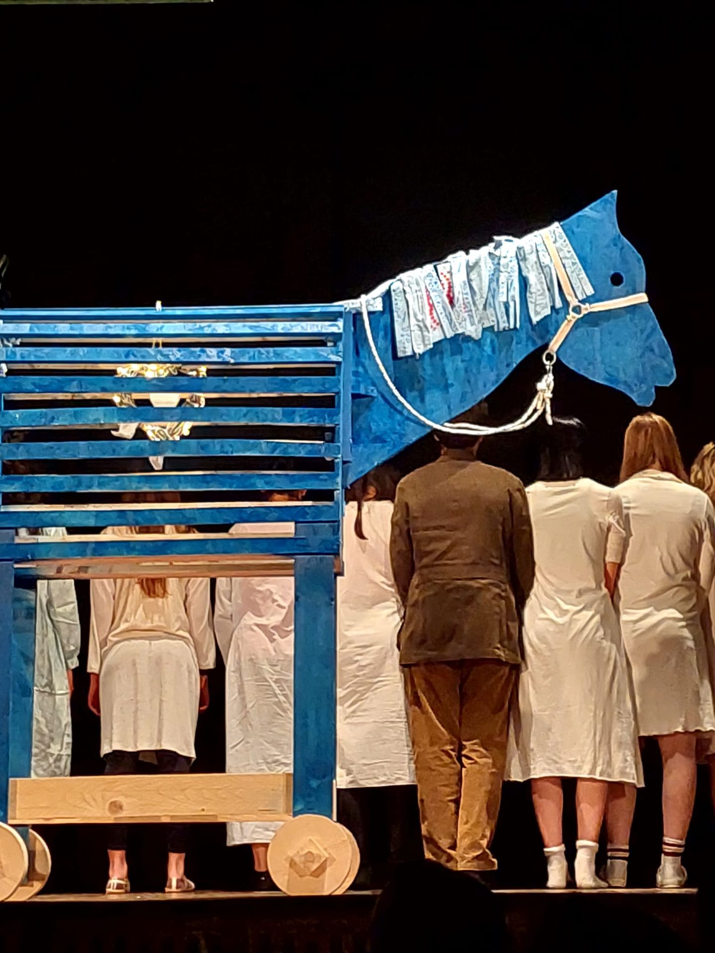 Lo spettacolo, che non voleva essere una fedele ricostruzione storico-documentaristica, ha messo in evidenza i diversi aspetti del disagio mentale, ha cercato di restituire innanzitutto la dignità dei pazienti, ma anche degli operatori. Questo approccio ha permesso alla rappresentazione di alternare momenti altamente drammatici ad altri più leggeri, sempre con l’occhio attento all’idea di librazione come pieno godimento di diritti individuali. La forte scena finale, con il grande cavallo azzurro costruito dai “matti”, che esce dal manicomio teatro della vicenda scendendo in platea è diventata così la rappresentazione concreta delle diverse personalità dei pazienti che entrano in relazione autentica con il mondo, portando con sé i loro sogni, le loro aspettative.