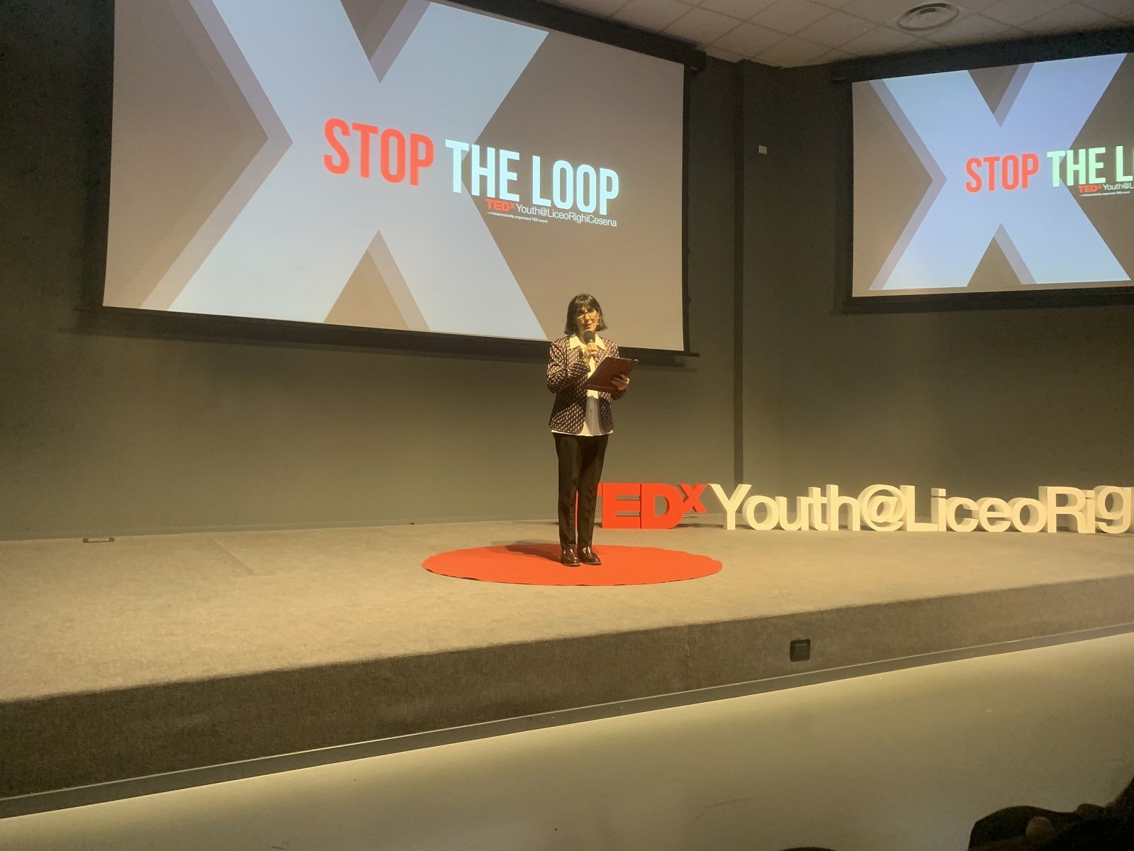 “Stop the loop”. Per uscire dagli schemi del quotidiano. Questo il tema messo al centro dal TedxYiouth del liceo Scientifico Righi di Cesena. Una mattinata intensa quella proposta oggi dall’equipe composta da 34 studenti, da alcuni loro docenti e dal team di Tedx Cesena. E un lavoro intenso, quello avviato ad aprile scorso e oggi approdato davanti a oltre 200 persone che hanno seguito gli interventi dei sette speaker e dalle classi del “Righi” collegate in streaming. All’evento hanno preso parte anche la dirigente del liceo “Monti” Simonetta Bini e quella del liceo “Alpi” Valentina Biguzzi. Presenti, tra gli altri, anche i presidenti del Rotary club di Cesena, Paolo Montalti, del Lions di Cesena, Marco Della Rosa, del Roatract, Karina Fedorenko, e il direttore di Cesena fiera, Luigi Bianchi. Per l’Amministrazione comunale era presente l’assessore Camillo Acerbi.
