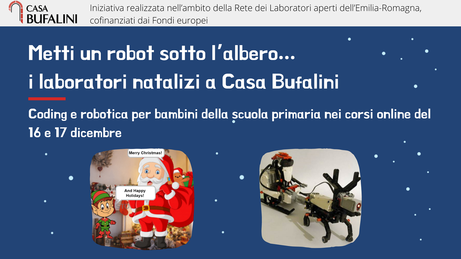 A Casa Bufalini si aspetta il Natale con laboratori originali e creativi. I due appuntamenti online in programma vedono al centro dell’attenzione il coding e la robotica, linguaggi contemporanei utilizzati per produrre oggetti da mettere sotto l’albero.  I laboratori sono pensati per alunni di scuola elementare, da 6 a 11 anni, chiamati a dare libero spazio alla fantasia, alla creatività e al divertimento. Ne dà notizia il Comune con una nota inviata alla stampa questa mattina.
