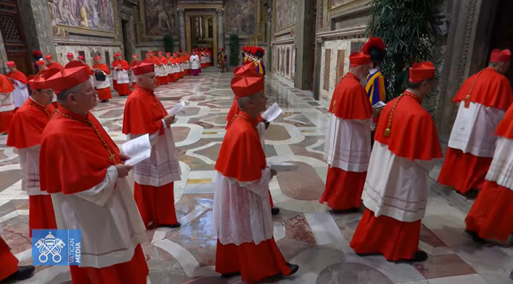 Da qui, alle 16,30, ha preso il via la processione, accompagnata dal canto delle Litanie, verso la Cappella Sistina, nella quale comincerà il conclave per l’elezione del nuovo Papa.
