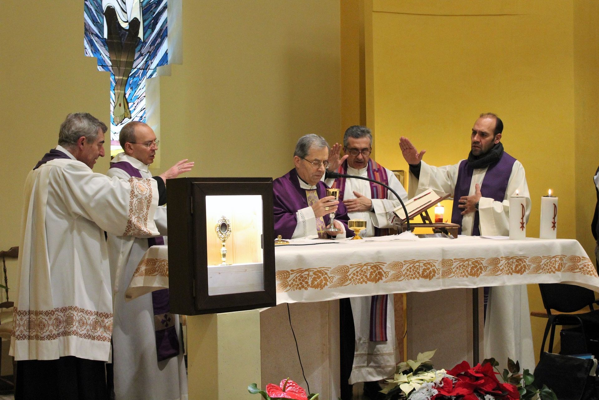 Durante la celebrazione è stata consegnata alla parrocchia una reliquia della Santa Croce. Il piccolo frammento di legno di quella che la tradizione indica come la vera Croce di Cristo, è stata posta dal vescovo in un reliquiario, ai piedi dell’altare (foto in alto) dove resterà per tutto l’anno giubilare. Al termine del periodo, la reliquia rimarrà di proprietà della parrocchia e verrà conservata in una teca all’interno della stessa chiesa.