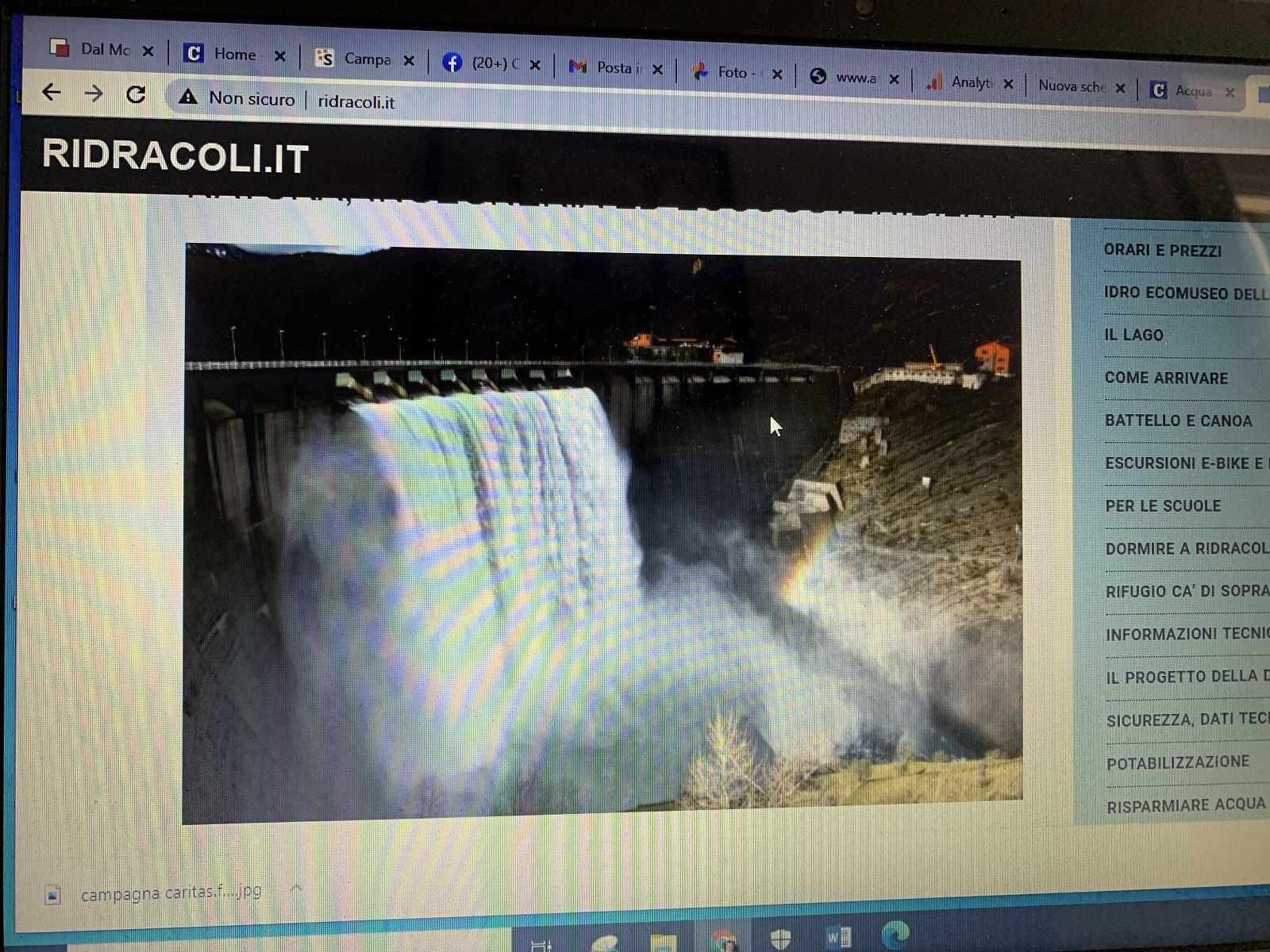 Raggiunti i suoi 33 milioni di metri cubi di acqua, a 557 metri di quota sul livello del mare, poco fa alla diga di Ridracoli è iniziata, come da previsioni, una spettacolare tracimazione.