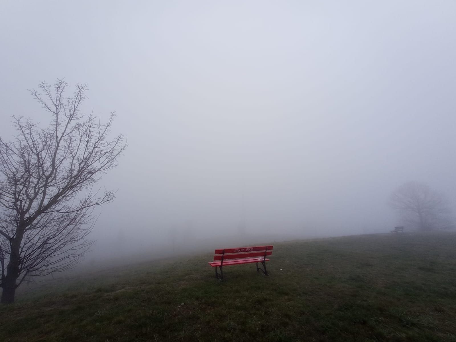 Dal colle Spaziano, al Monte, la nebbia impedisce lo sguardo verso la città. Foto Marino Savoia.