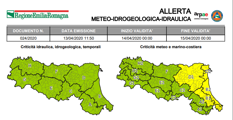 Il servizio meteorologico della Regione Emilia-Romagna poco fa ha diffuso un’allerta meteo (colore giallo, il minore su una scala di tre) per la giornata di domani.