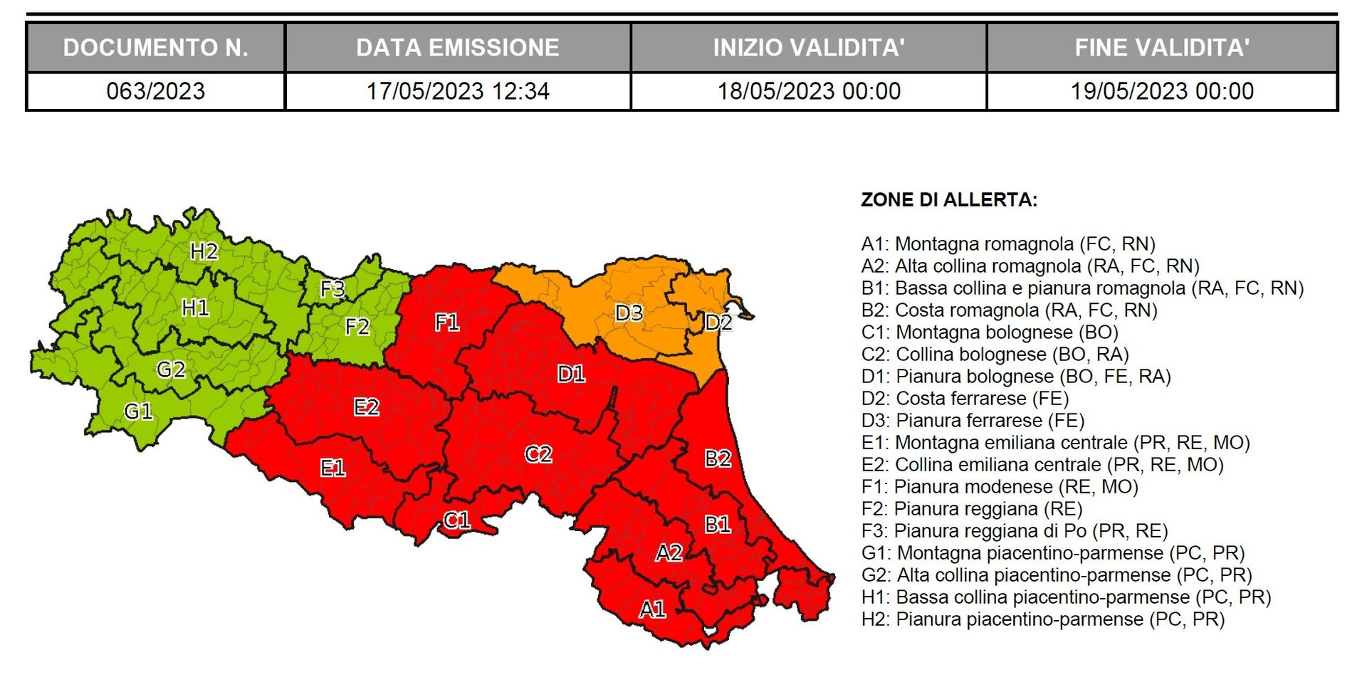 La criticità idraulica rossa nella pianura modenese è riferita alla propagazione della piena sul fiume Secchia, sul fiume Panaro si prevede una piena di criticità arancione. Dal punto di vista della criticità idrogeologica saranno ancora possibili numerosi e diffusi dissesti nel settore centrale e orientale della regione dove permarranno condizioni favorevoli allo sviluppo di frane per scivolamento e colamento lungo i versanti caratterizzati da condizioni idrogeologiche fragili, e all’aggravamento delle numerosissime frane già attivatesi a seguito delle precipitazioni dei giorni scorsi.