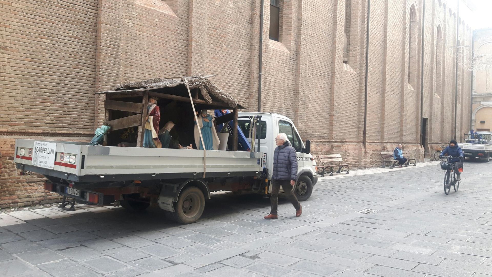 Ed è arrivata anche la Sacra Famiglia, non sul dorso di un asinello ma di un più moderno (quanto inquinante) autocarro.