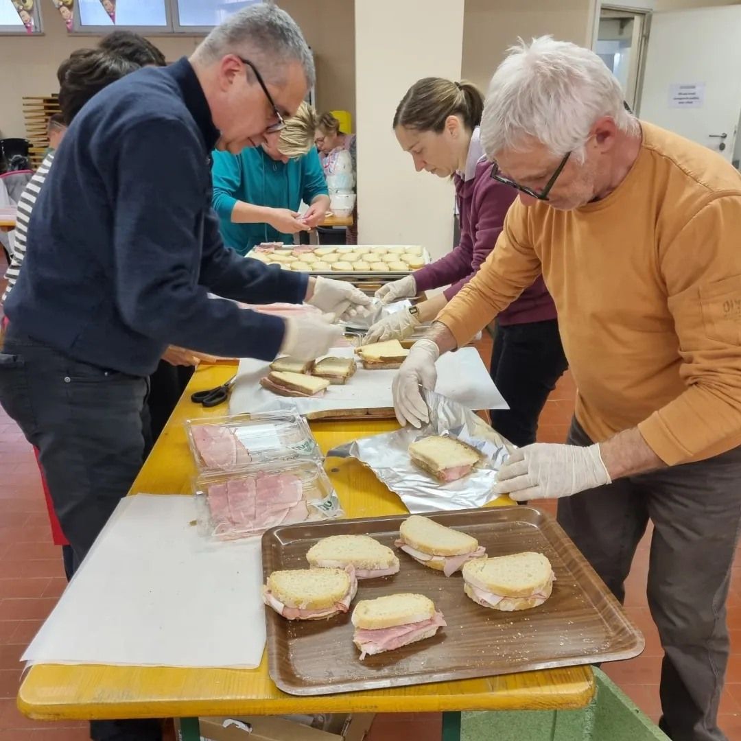 Il parroco e i parrocchiani di Calisese assieme alla Pro loco “Calisese in vita” hanno preparato più di 200 pasti. Stanno arrivando ai volontari di Martorano e Ronta, impegnati a liberare strade e case dal fango.