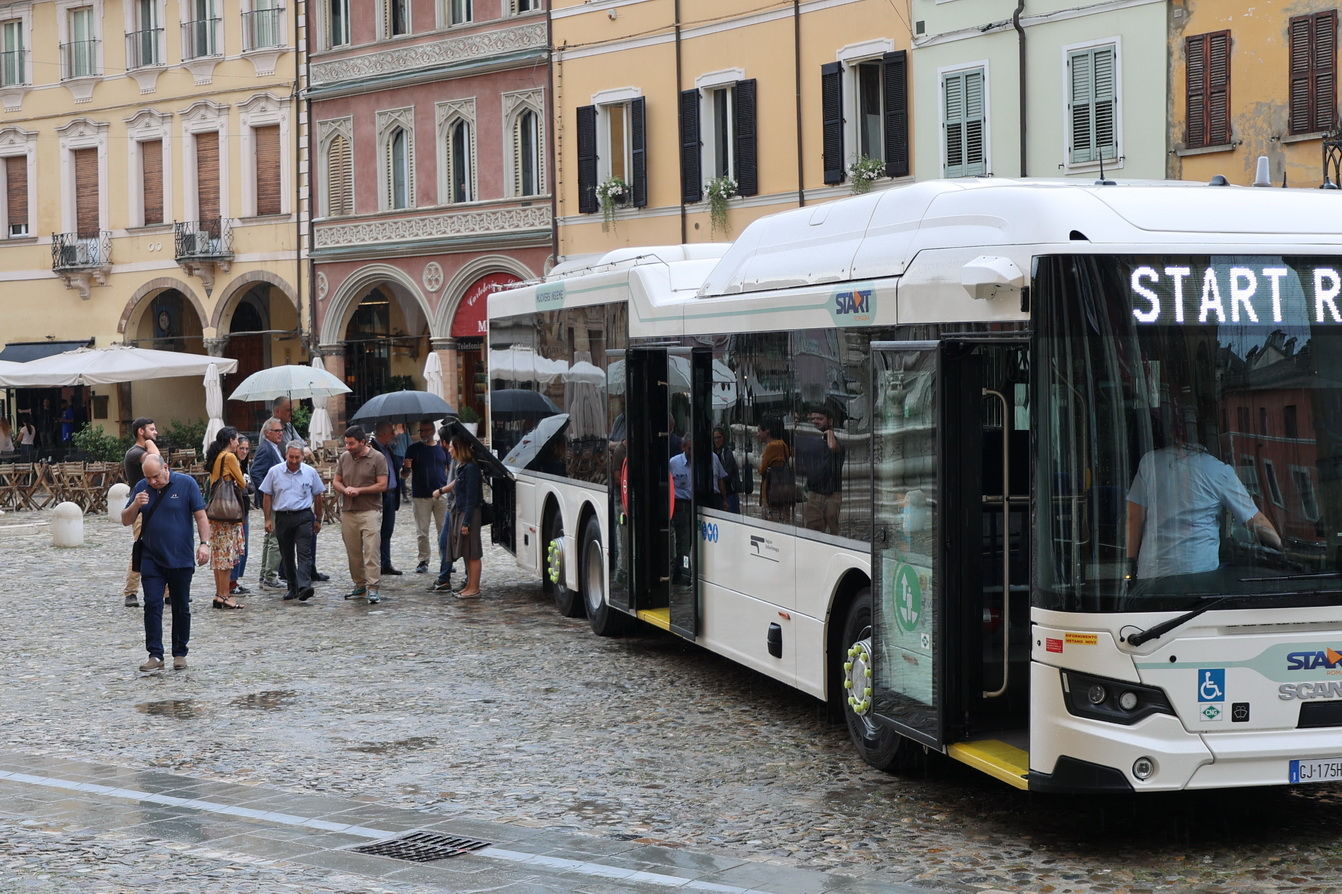 Prima della seduta, i membri delle commissioni hanno avuto la possibilità di vedere in diretta uno dei nuovi mezzi da 14,5 metri dotati di tecnologie innovative. Sarà utilizzato principalmente nelle linee suburbane 95/94 e 92 a Cesena.