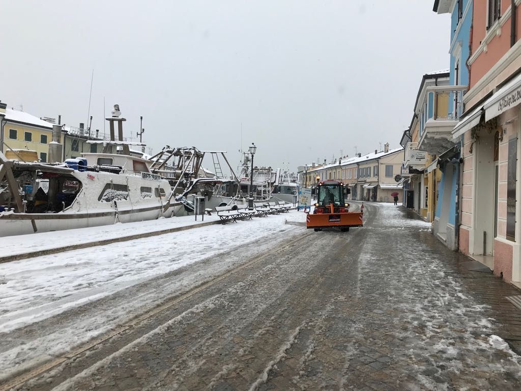 Spazzaneve in azione anche sul portocanale, come da foto di Maurizio Franzosi.