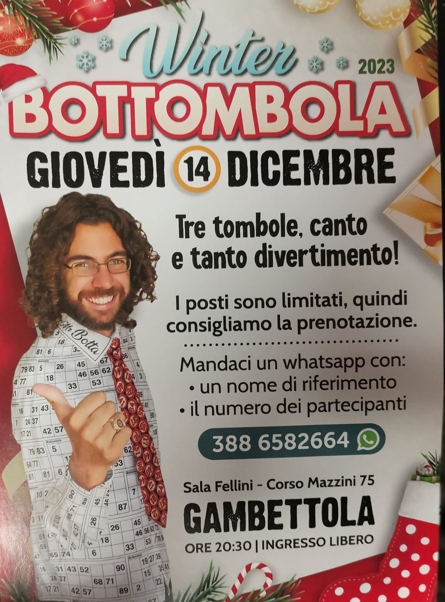Arriva la Bottombola nella versione invernale. Per le famiglie che quest’estate hanno partecipato alle Bottombole del Labirinto del mais di Sala di Cesenatico, la simpatica tombola continua a Gambettola giovedì 14 dicembre 2023.