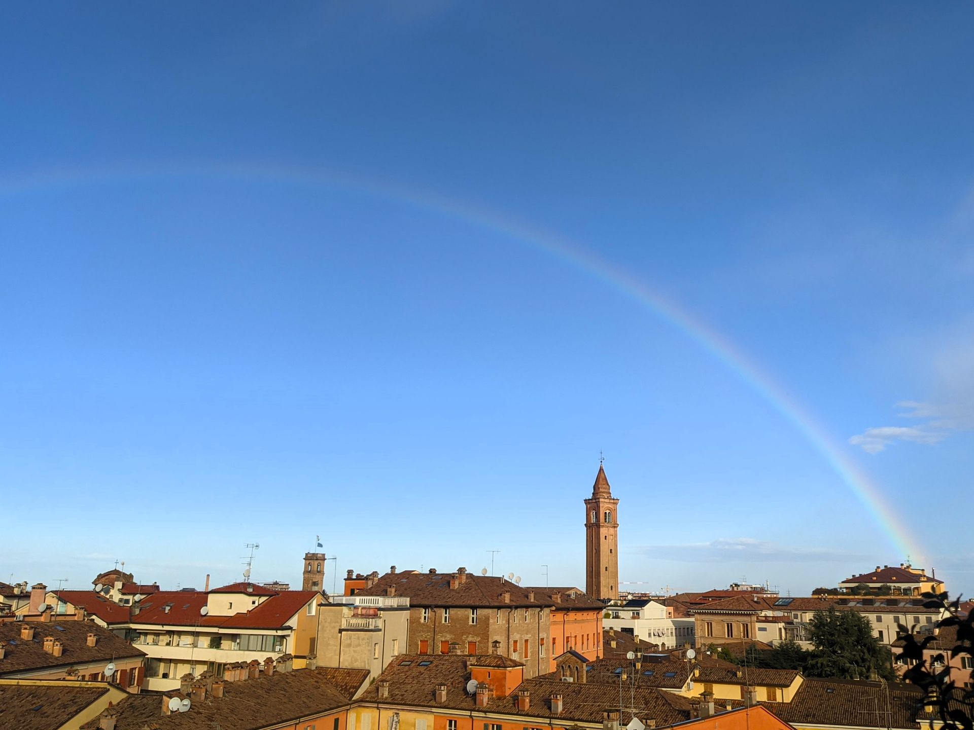 Dopo la pioggia e il forte vento di questa notte, con diversi danni (vedi notizia collegata), sulla città di Cesena poco dopo le nove e mezza del mattino è comparso un grande arcobaleno.