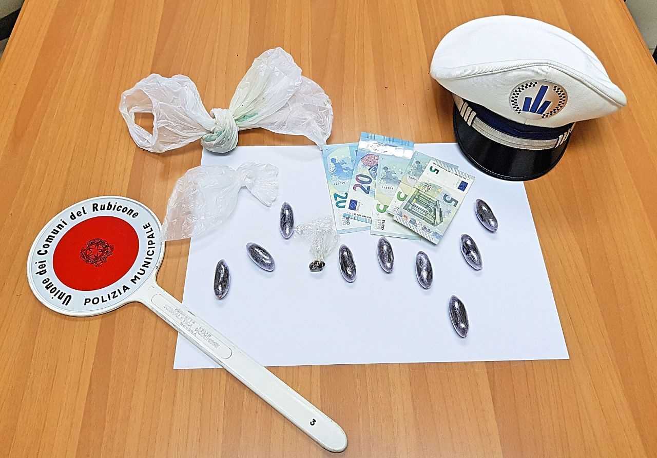 A insospettire la pattuglia dell’Unità Antidegrado (che vede associate le polizie municipali di Cesenatico e Unione Rubicone-mare), impegnata nel controllo del territorio, era stato l’armeggiare del giovane uomo vicino ad una siepe. Accortosi della presenza degli agenti, il giovane (un 20enne magrebino residente a Savignano) si era immediatamente dato alla fuga disfacendosi di un involucro. Il pacchetto, subito recuperato dagli agenti, conteneva circa 100 grammi di hashish già confezionati in 10 ovuli pronti per lo spaccio.