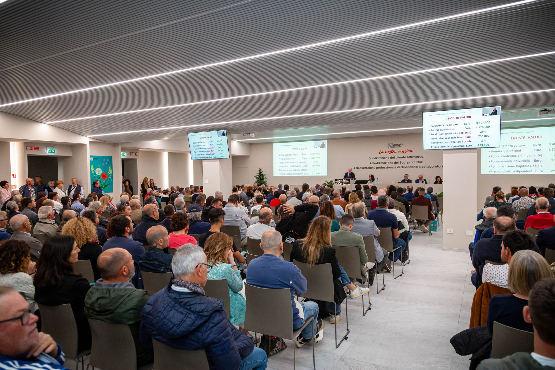Durante la mattinata i Soci hanno approvato un bilancio all’insegna di investimenti e solidarietà: 44,6 milioni di euro il valore della produzione, 781.708 euro di utile, 27,9 milioni di euro di liquidazione agli agricoltori soci. I risultati, presentati dal responsabile amministrazione e finanza Cac Davide Crociati, hanno risentito degli eventi atmosferici che hanno colpito il territorio un anno fa, portando a una riduzione della superficie delle colture in campo di oltre 1.200 ettari.