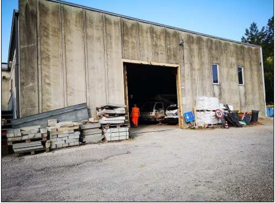Il lotto si compone di un capannone di 1633 metri quadrati e un’area pertinenziale di 77 metri quadrati, che confina con area demaniale. Il capannone è un immobile a un piano, con struttura prefabbricata intelaiata in cemento armato e tamponamenti parte in muratura di laterizio e parte con pannelli prefabbricati. L’immobile si compone di due locali con accessi indipendenti, il più piccolo con accesso carraio sul fronte strada mentre il locale posteriore più grande ha tre accessi tutti carrai, uno laterale e sul retro.