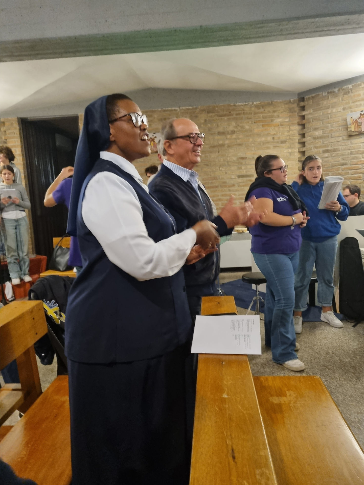 “Invece di portare il vestito nuovo, non era meglio ammazzare il vitello grasso?” l’intervento del vescovo rivolto a don Foschi tra sorrisi, canti con intermezzi africani che hanno accompagnato la prosecuzione della festa nel teatro parrocchiale.