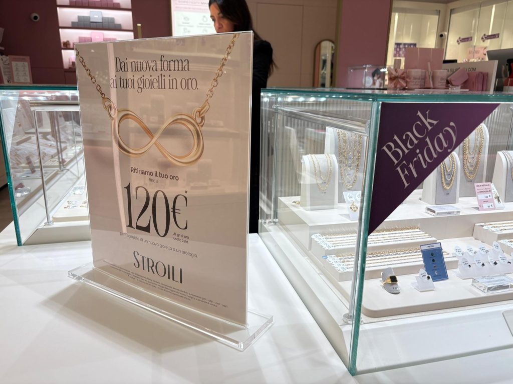 Soddisfazione invece trapela da Stroili. “Noi siamo partiti da lunedì – ci ha detto una commessa -, é andata abbastanza bene. Gli sconti vanno dal 20 al 70 e termineremo lunedì col Cyber Monday”. I preziosi sono stati usati per “regali di Natale, compleanno, anniversario”.