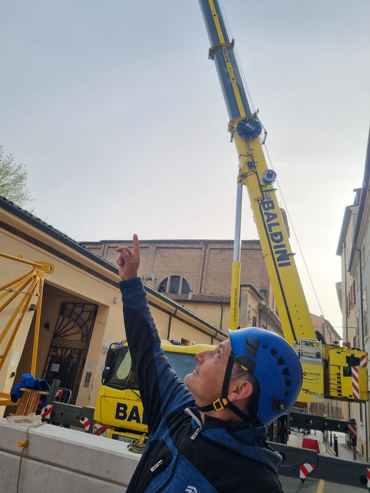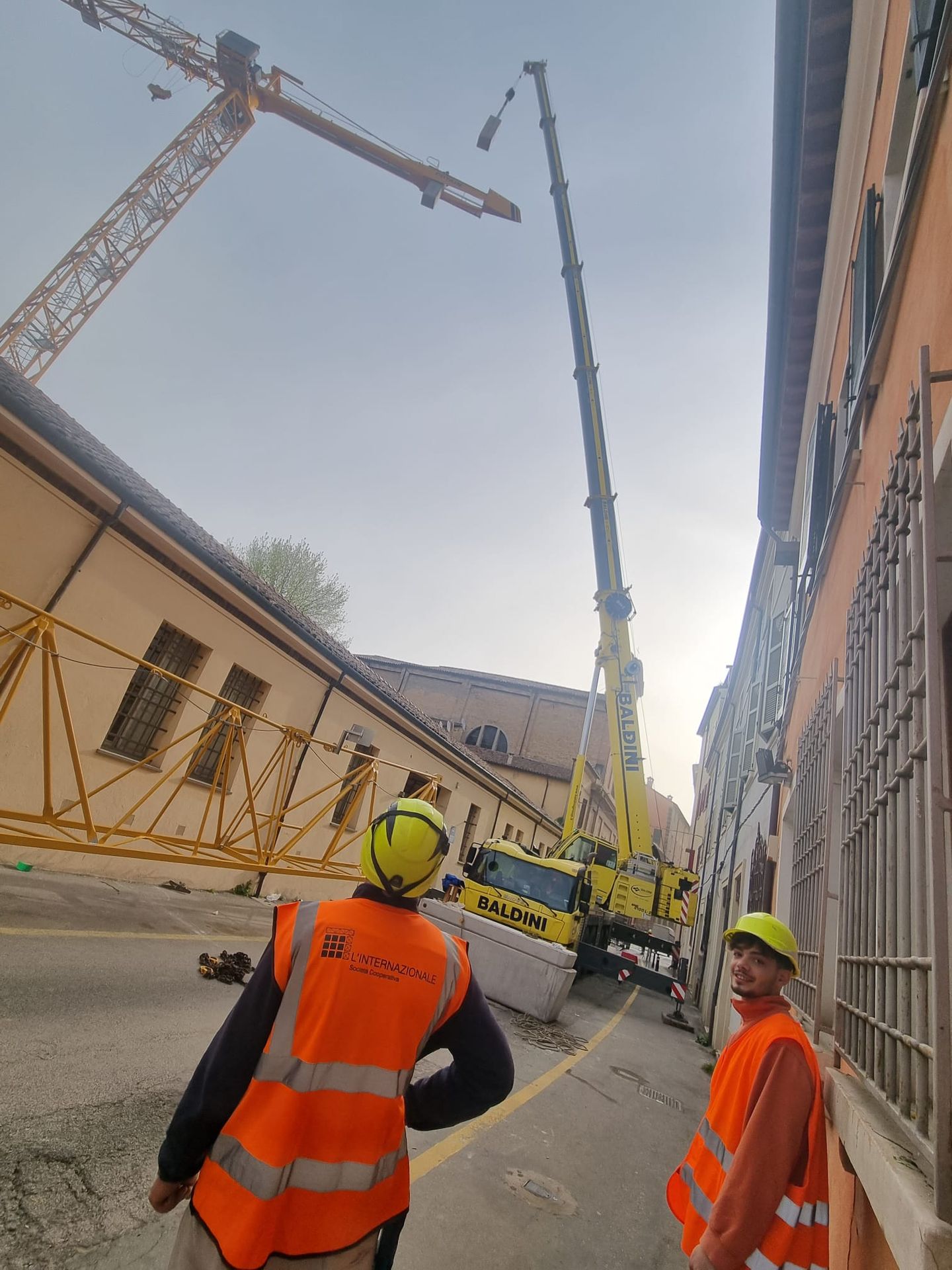 Cantiere Roverella, in corso il montaggio della gru. Le foto