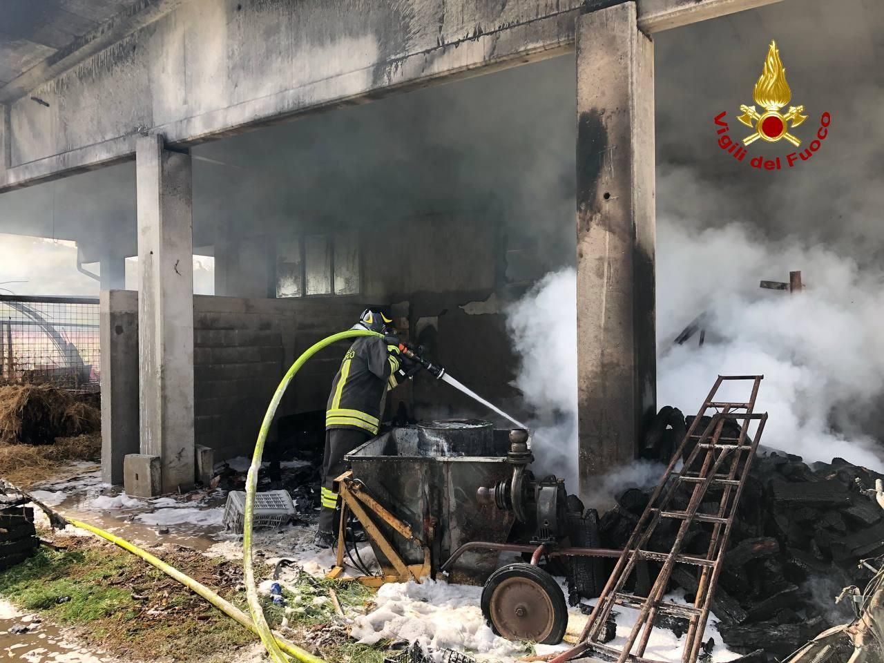 Capannone agricolo in fiamme, intervengono i Vigili del fuoco