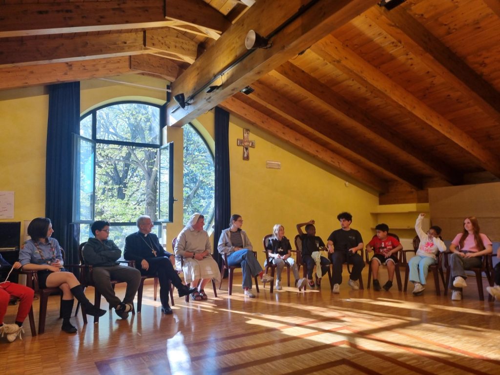 Oggi, venerdì, sono stati i più giovani frequentatori del Cantiere a essersi presentati al vescovo don Pino, per la prima volta in visita al centro educativo di via Mami, nel quartiere San Rocco di Cesena. Per farsi conoscersi e per conoscere, i bambini hanno così rivolto una serie di domande al vescovo. “Ci piace essere qui, perché stiamo insieme, giochiamo, facciamo i compiti e la merenda. E si gioca a calcio”, le risposte più frequenti dei bambini. Che poi sono passati da ‘intervistati’ a intervistatori, ponendo domande al vescovo don Pino. Quelle di partenza sul colore preferito, dove sei nato, quanti anni hai, il piatto preferito, da quanti anni sei vescovo e cosa fa il vescovo… Quale il gioco preferito di quando eri bambino? “Il calcio, con due pietre a fare da porta, ma anche l’atletica tra corsa e salti. Con allenamenti in spiaggia”, la risposta del vescovo. Ti piaceva andare a scuola? La materiale preferita? “Mi piaceva andare a scuola e ho continuato a studiare anche dopo essere diventato prete. Una particolare preferenza l’ho sempre avuta per l’astronomia: quando la sera guardo il cielo stellato, noti la grandezza dell’universo e scopri che Dio è più grande dell’universo”, prosegue monsignor Caiazzo. E cita un passaggio del Corano, dove dice: “In una notte nera, c’è una pietra nera e sopra, una formica nera. Dio la vede”. Il cantante preferito? “Gianni Morandi che cantava ‘Ritornerò in ginocchio da te…’ Morandi la cantava alla sua ragazza, io lo canto al nostro Signore. Mi piace anche Simone Cristicchi, Renato Zero e anche i più giovani Angelina Mango e Alessandra Amoroso”. La paura di quando eri bambino? “Del buio, che in campagna dove abitavamo la notte era molto buia e dovevamo usare il lume per spostarci in casa. Ma comunque quando si spostava la mamma, andavamo sicuro dietro a lei…”. Fino alle domande più ‘difficili’: la cosa più bella di essere vescovo? “La cosa più bella per me è essere cristiano – sottolinea il vescovo Caiazzo -. Se sono vescovo non l’ho deciso io, ma Lui. E io sono contento di fare la sua volontà”.