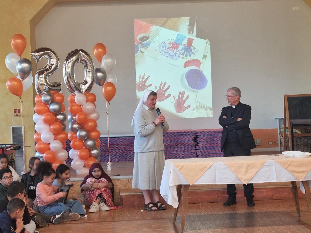 Sorrisi, giochi, tante domande e altrettante risposte e, immancabile, la torta. È stato un tardo pomeriggio di festa quello di oggi al Cantiere 411, centro educativo promosso da “Il Pellicano”, associazione di promozione sociale nata nel 2005 per iniziativa delle suore francescane della Sacra Famiglia. Sono dunque venti anni di attività quelle celebrate alla presenza delle suore francescane della Sacra Famiglia, dei soci fondatori, dei volontari. E anche di chi, ragazzi e ora uomini e donne, hanno svolto il servizio civile e degli scout adulti del Masci della parrocchia di San Paolo. “Sono tante le persone che insieme a noi hanno fatto nascere l’associazione, dando ascolto alla richiesta di un luogo di accoglienza. Abbiamo chiesto aiuto, e abbiamo trovato amici che ci hanno sempre accompagnato in questi anni. E altri se ne sono aggiunti – le parole della madre generale suor Daniela Scarpellini -. Con l’associazione ‘Il Pellicano’ portiamo avanti la nostra vita carismatica e la nostra presenza, condividendo con tanti questa esperienza. Sono semi gettati, per un mondo più bello”.