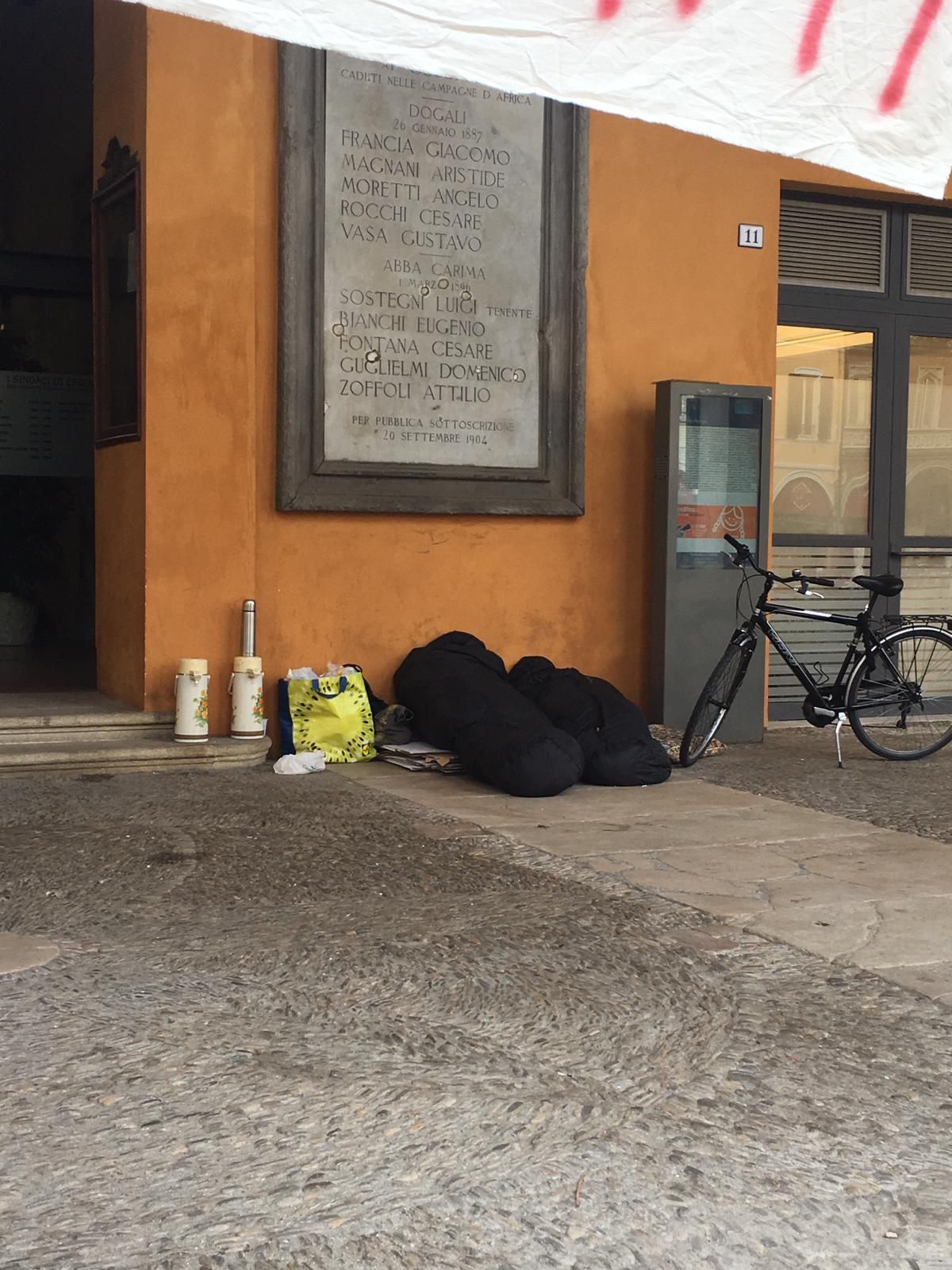Dormono davanti alla porta del Comune dal 14 novembre ma il freddo li ha spinti a venire ancora più allo scoperto.
