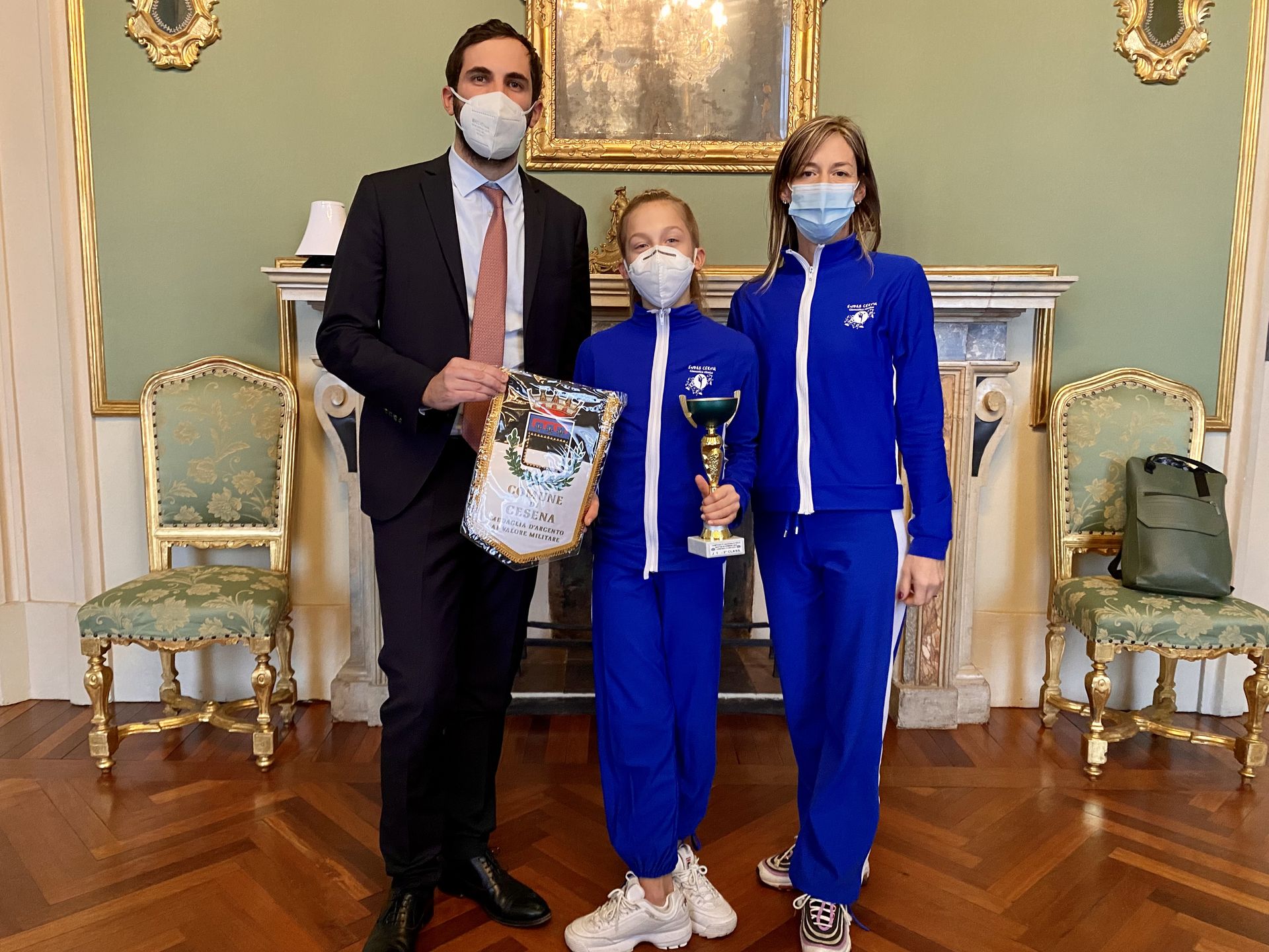 Caterina Maltoni era accompagnata ad incontrare il sindaco dal tecnico federale e giudice nazionale Simona Ravaioli. L’atleta, sostenuta da Yana Siniel Nikova, tecnico federale, e Natalia Putko, dirigente ed ex ginnasta della squadra junior russa, dell’Endas Cervia, ha contribuito alla promozione in Serie B della società che ad oggi è la realtà sportiva con più podi in Italia.