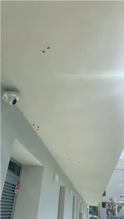 Nelle foto scattate poco fa da un operatore di piscina di un hotel della zona, gli insetti si vedono ovunque e, a quanto racconta il lavoratore, sono presenti anche in acqua. Un fenomeno piuttosto impressionante e di notevoli dimensioni.