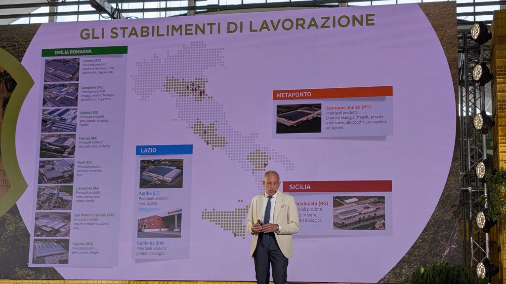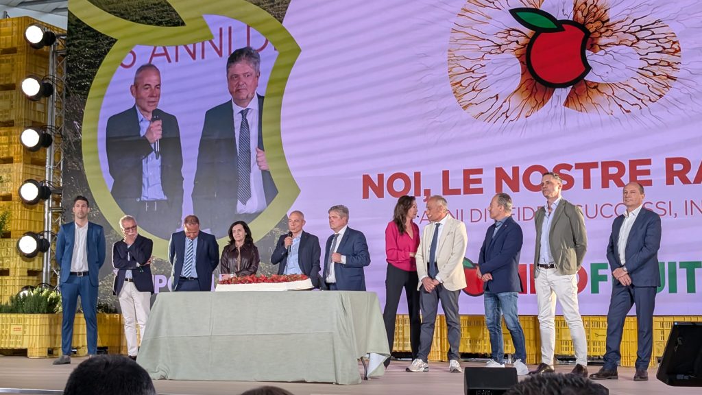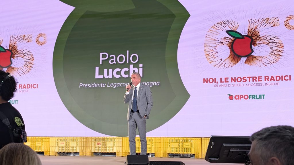 Il presidente di Apofruit Mirco Zanotti ha ripercorso la storia della cooperativa, divenuta Apofruit nel 1991 con diverse fusioni e, dal 2003, Apofruit Italia aprendosi al centro e sud (Aprilia, Metaponto e altro). Un’espansione che è andata di pari passo con il rinnovamento generazionale, con una quota di “fascia giovanile” tra le più alte del settore. Con una grande attenzione all’ambiente, grazie all’installazione di impianti fotovoltaici (che garantiscono al gruppo un quarto della propria energia) avvenuta di pari passo con la bonifica delle coperture in amianto. Senza trascurare il biologico «che rappresenta ad oggi il 30 per cento del fatturato». Con 9500 ettari coltivati e 1,5 milioni di quintali di potenziale produttivo, Apofruit oggi realizza un valore medio di produzione pari a 245 milioni di euro, con 2mila lavoratori stagionali e 250 dipendenti fissi.