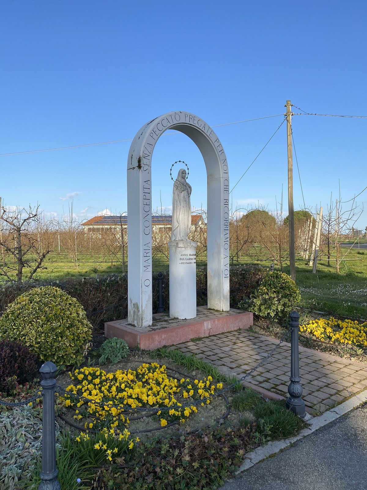 Come più volte descritto su queste colonne, la celletta mariana di Bulgarnò è una delle meglio custodite. La foto scattata ieri pomeriggio mostra come la cura sia massima da parte della famiglia Baiardi, sul cui terreno sorge l’edicola sacra, sia da parte dei vicini. Con l’arrivo delle prime temperature tiepide, i fiori ornano la statua della Madonna cui si affidano ogni giorni molti tra coloro che transitano lungo la provinciale Ruffio, all’incrocio con la via Bulgarnò II.