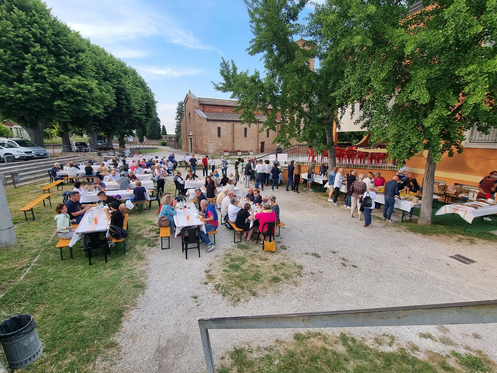 Ieri sera, venerdì 2 giugno, il piazzale della chiesa di Calisese ha accolto una cena di beneficenza con menu a sorpresa. I piatti sono stati realizzati utilizzando queste le rimanenze di prodotti donati da aziende e benefattori per preparare i pasti durante l’alluvione, una decina di giorni in cui alcuni volontari della parrocchia insieme a quelli della Proloco CaliseseInVita e della parrocchia di Badia di Longiano hanno preparato circa 300 pasti al giorno per il personale che lavorava durante l’emergenza.